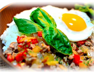 ちょっとスパイシーなものが食べたい時に嬉しい鶏肉と野菜がたっぷりのガパオライス♪低脂肪でも食べ応えバッチリの